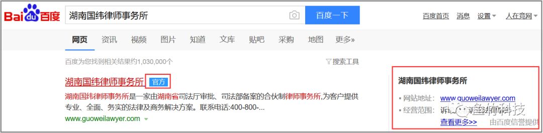 眾所周知,律師行業是一個特別嚴謹、慎重的高知識分子的群體組成。今天我們不是來歌頌“阿詹”(因為網上實在太多人夸她)也不是來介紹律師這個群體有多么偉大,而是我們一起來看看百度是如何助力湖南地區律師行業客戶進行互聯網“品牌保護”的,話不多說,直接上圖。